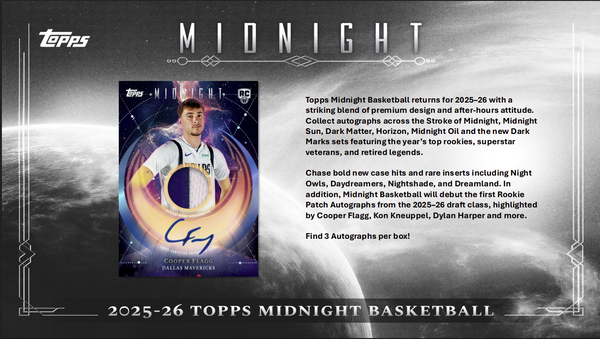 This break consists of 2 hobby boxes of 25-26 Topps Midnight Basketball. The break is run pick your team (PYT) style. You will receive all cards for any team(s) you own in the break. All cards ship.